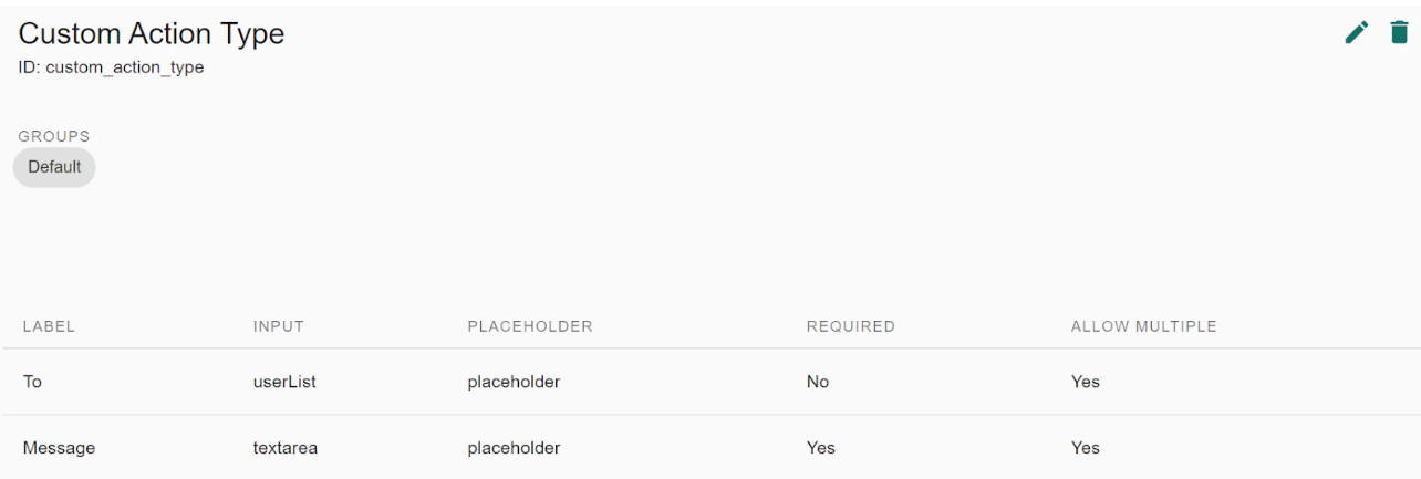 IA comes with certain built-in Action Types (e.g. Send Email, Send SMS, Publish Message). The Admin Action Types page can be used to add new Action Types.