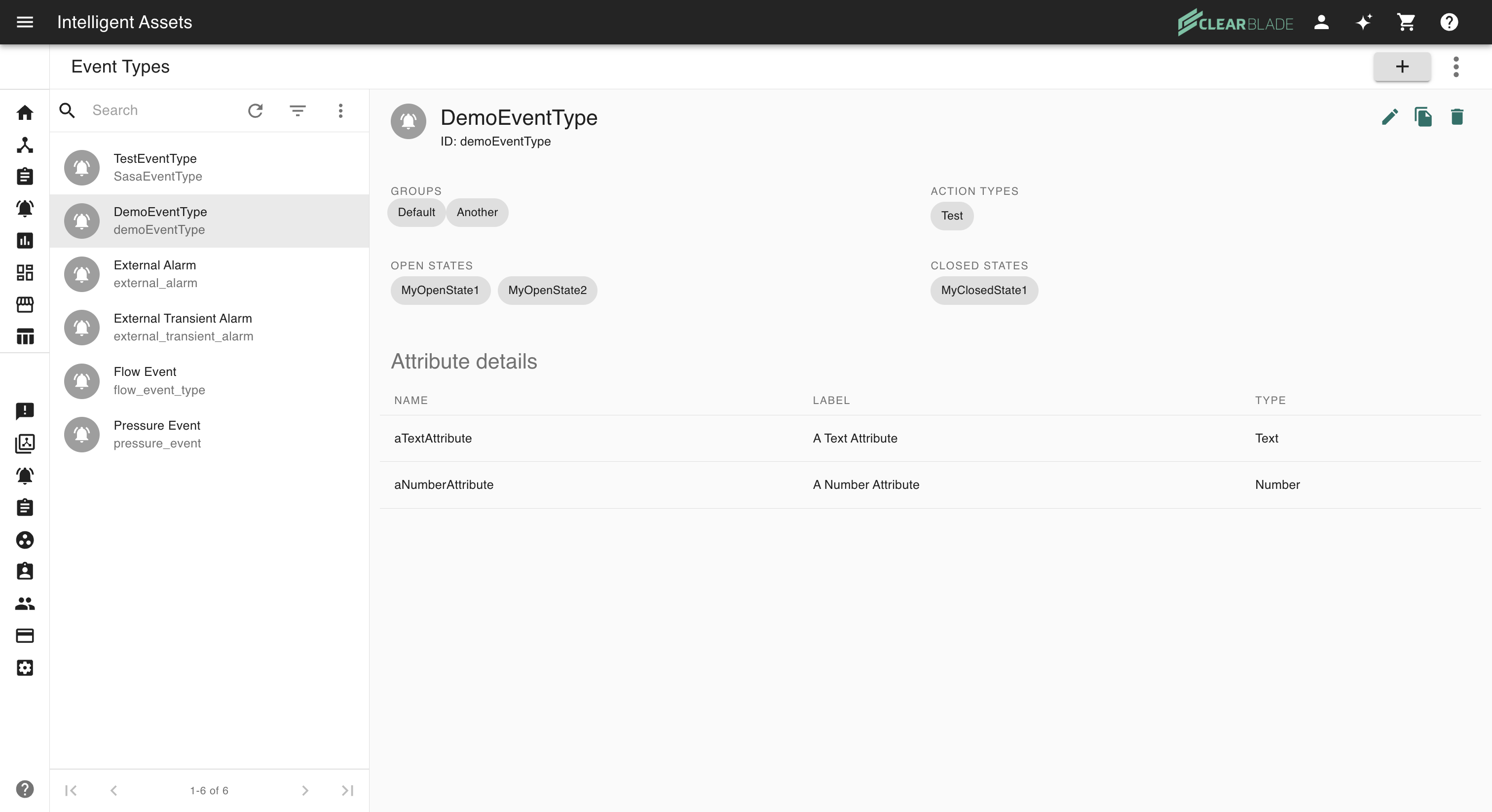You can edit, clone, or delete the event type by clicking the respective icon on the top right of the screen: