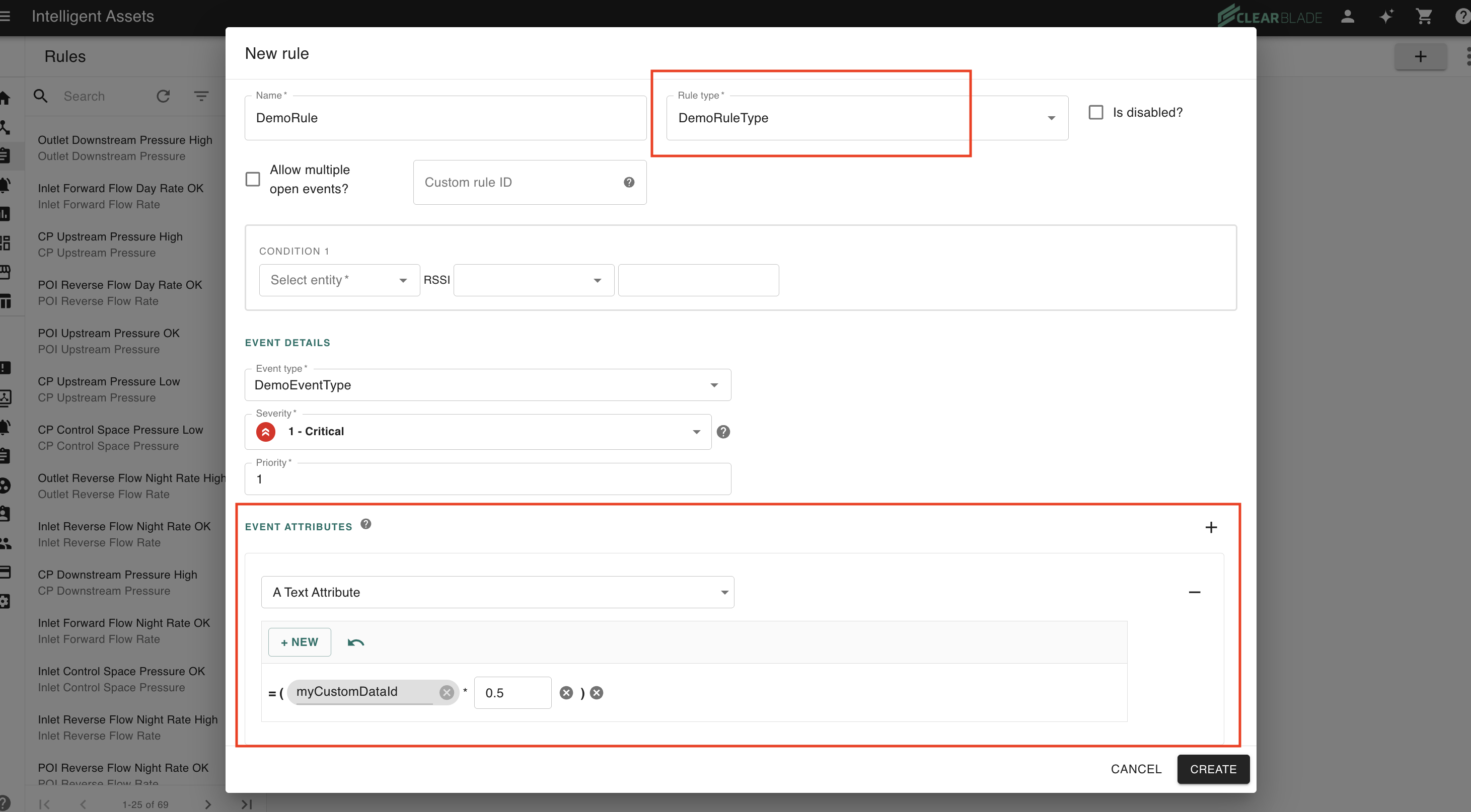 Then go to the rules page and create a rule that uses your rule type. You will be given the option to add event attributes to your rule, once you’ve associated your rule type to it.
