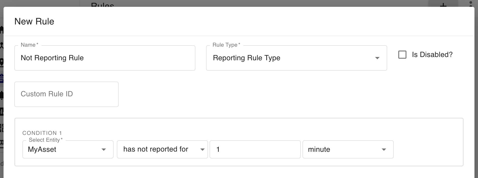 A rule that checks whether your asset or attribute has not reported during a specified duration. This is based on the asset’s last updated value.