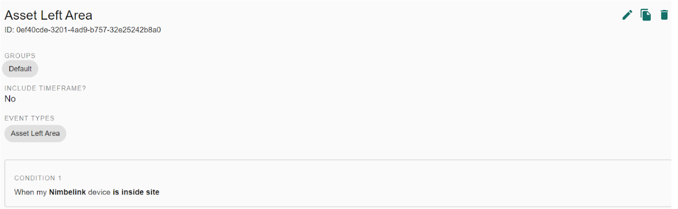 An AREA Condition allows comparing asset locations with areas / geofences of other assets.