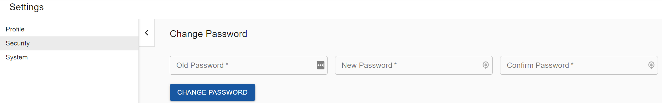 4. Click the Security tab on the left of the page to change your password:
