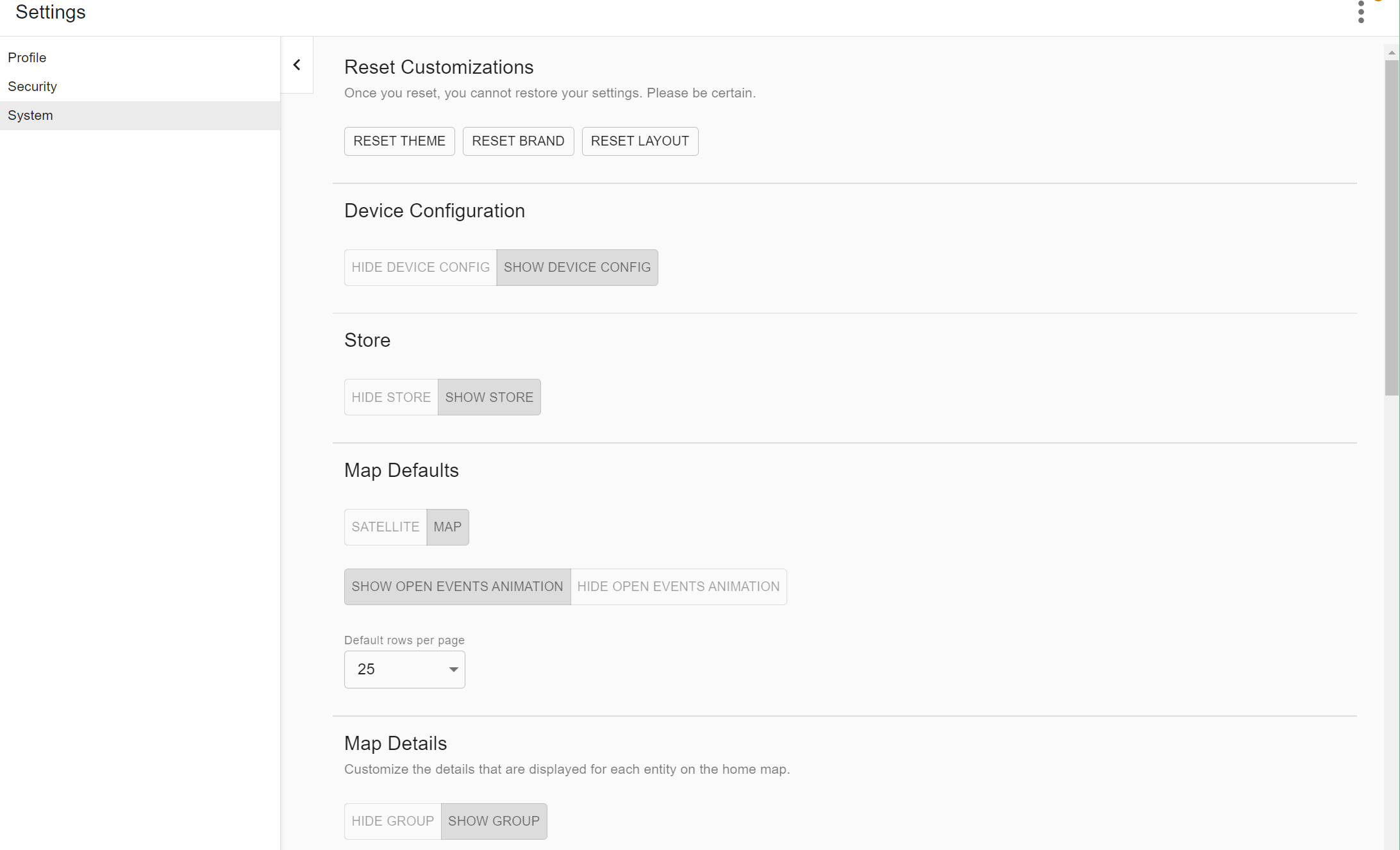 5. Click the System tab on the left of the page to view and modify the rest of your settings: