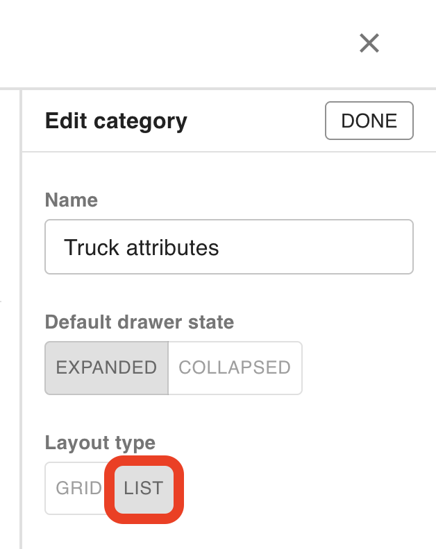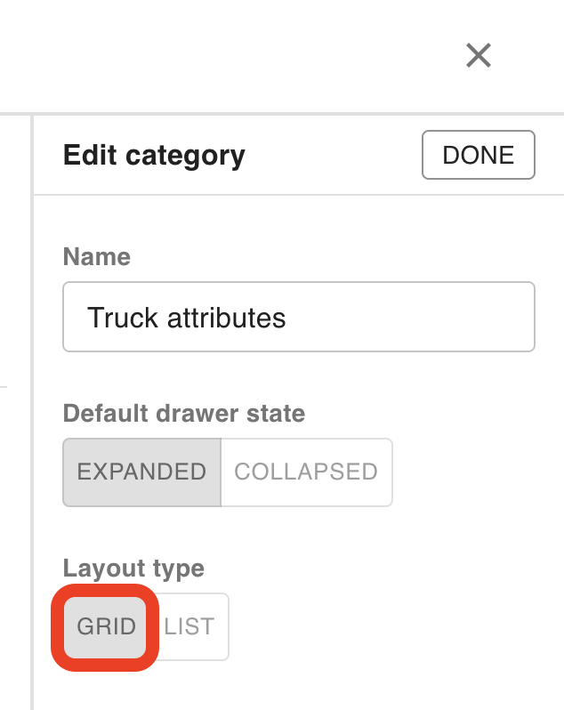 Then, in the Edit category panel on the right, select Grid in the button group under Layout type: