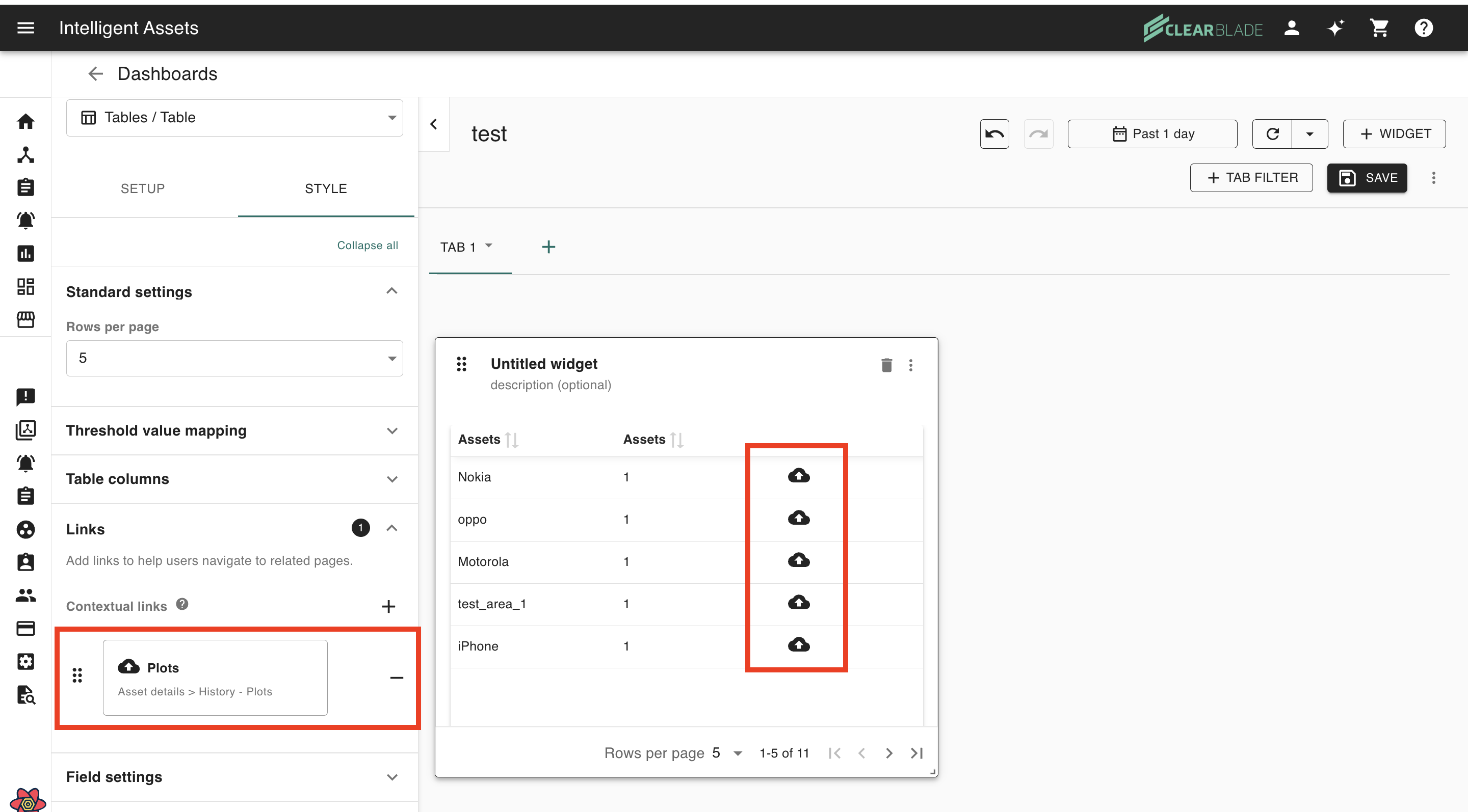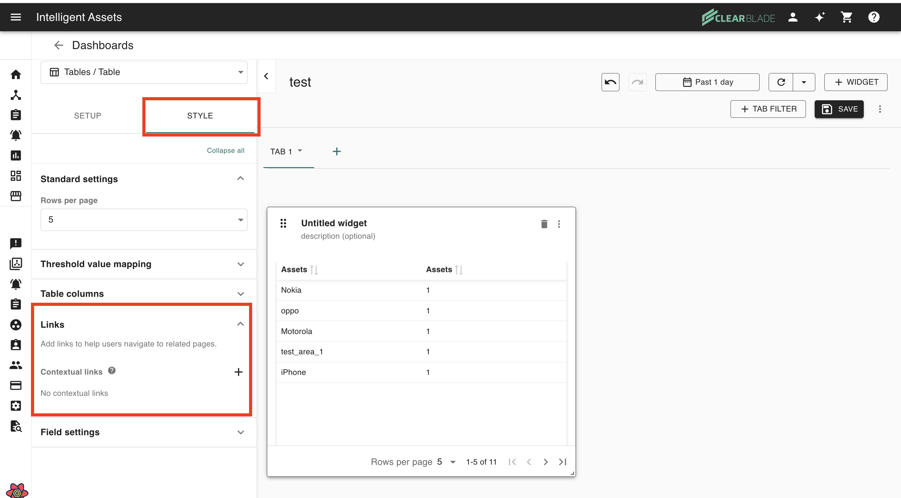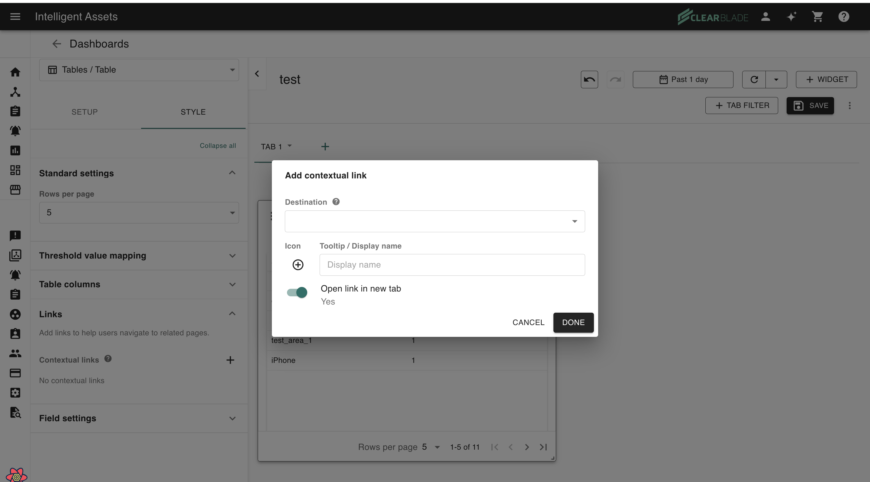 The contextual link settings allow users to configure action/links on dashboard tables. They are focused on row-specific destinations.