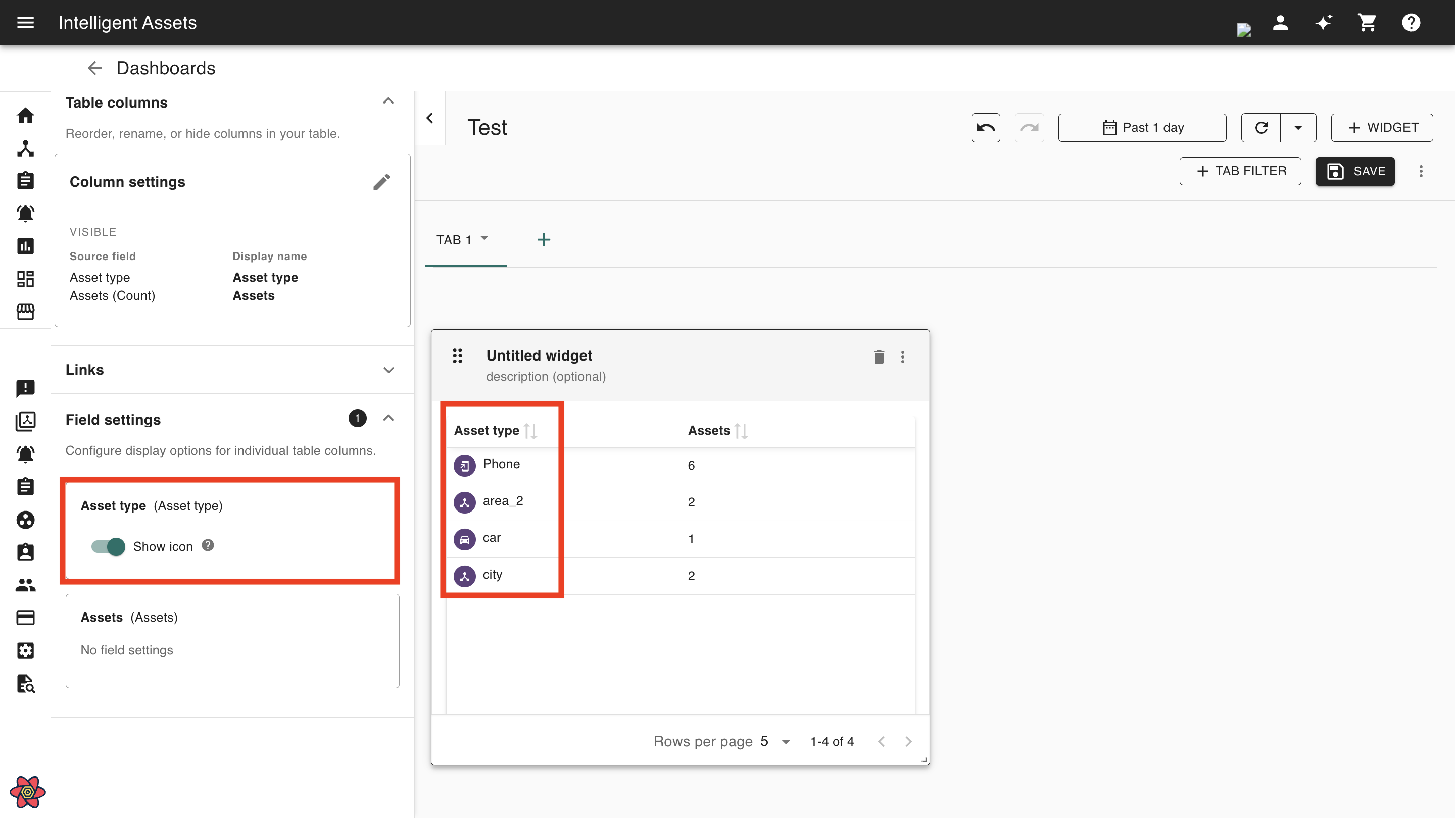 Show iconoption, the respective icons for the selected columns will appear in the Dashboard table alongside the row values.