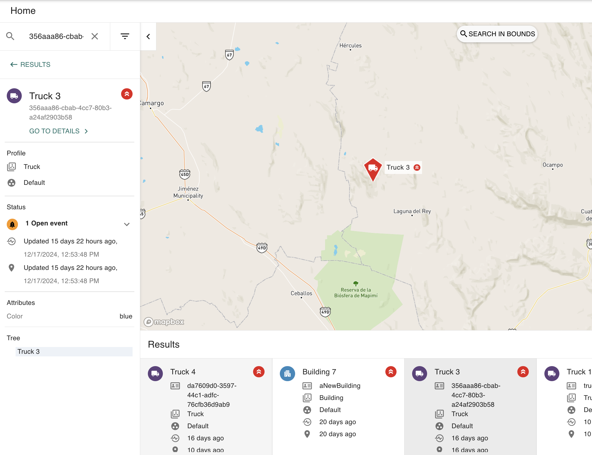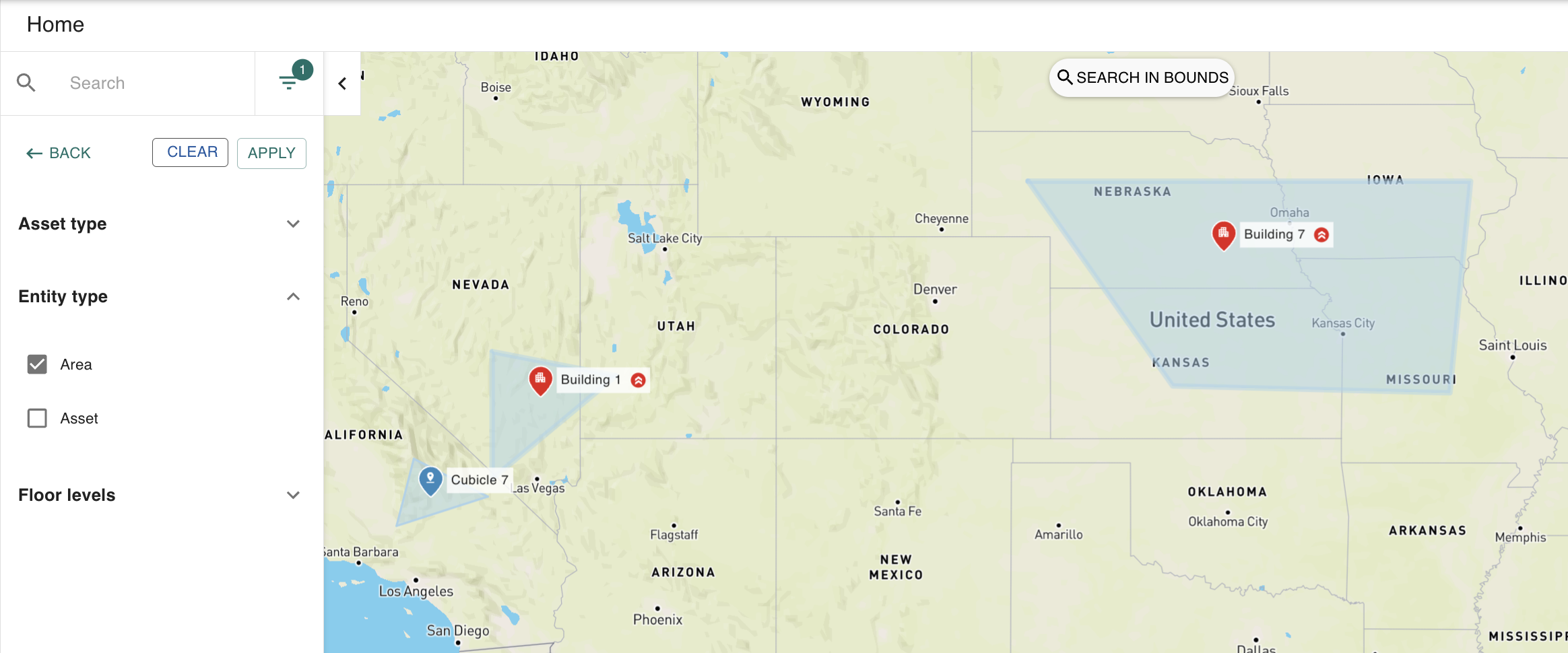 Once done, click Search in Bounds on the top of the map to refresh the assets on your map.