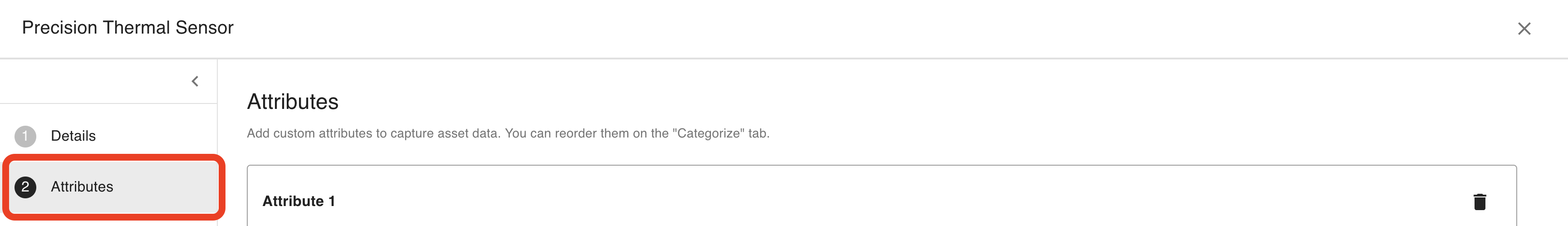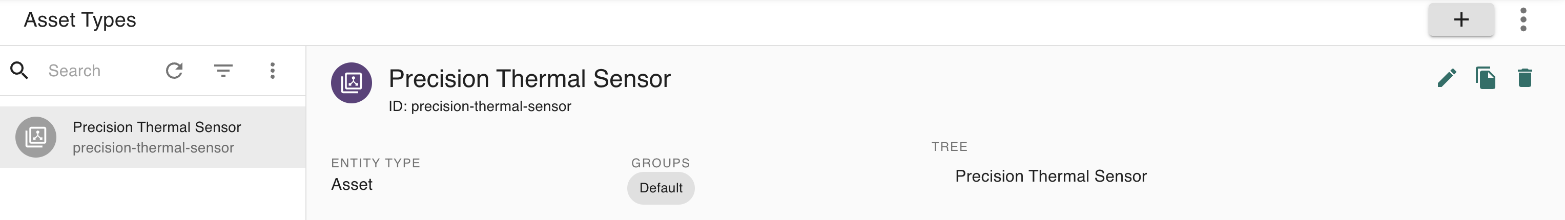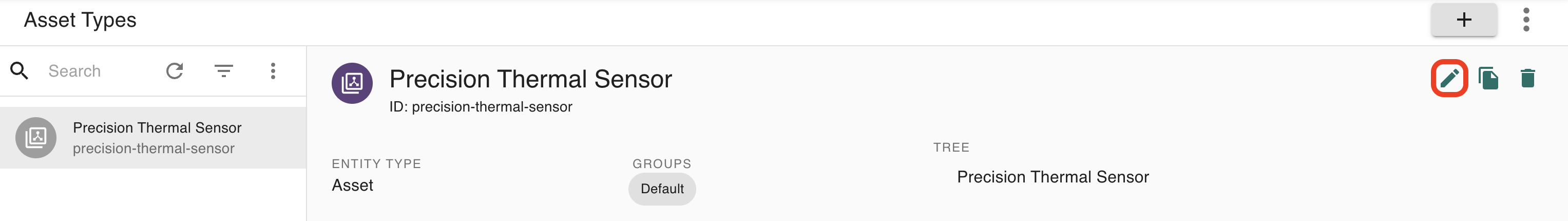 Select the asset type to modify. For example, a Precision Thermal Sensor: