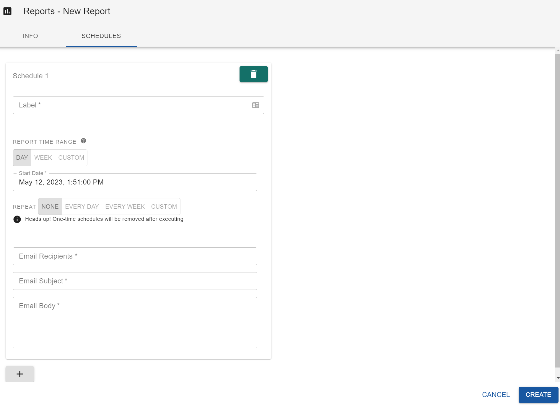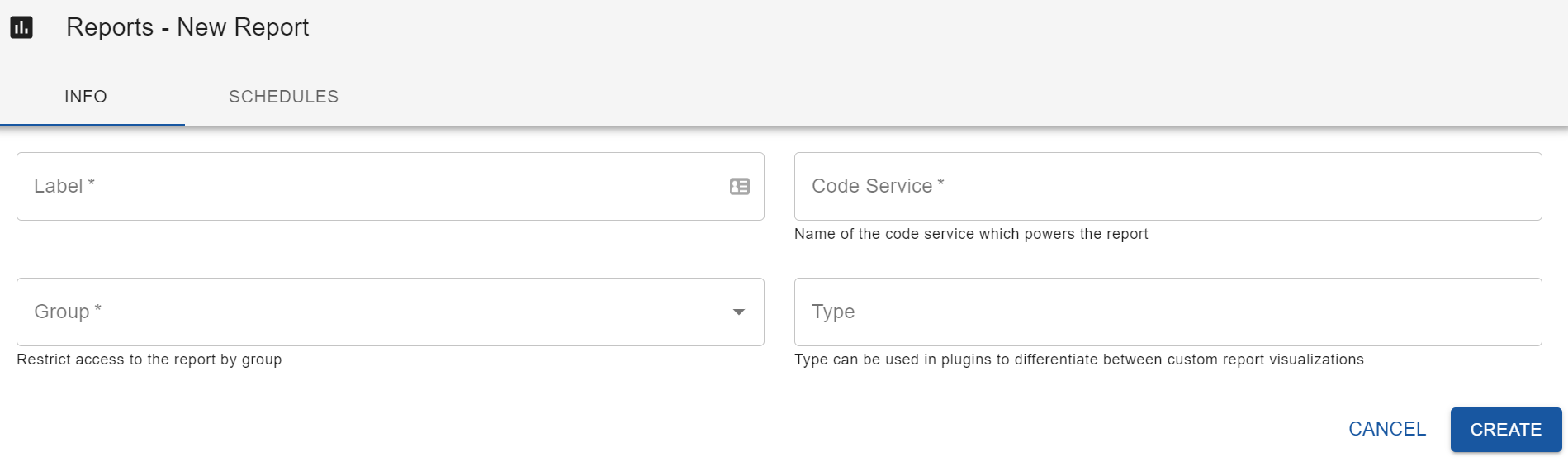 The reports page is used to generate insights on your data. A report code service handles the logic for formatting the data retrieved from the database. Report code services can accept a time range to apply to database queries. Schedules on the reports page are used to regularly email the reports to relevant stakeholders.