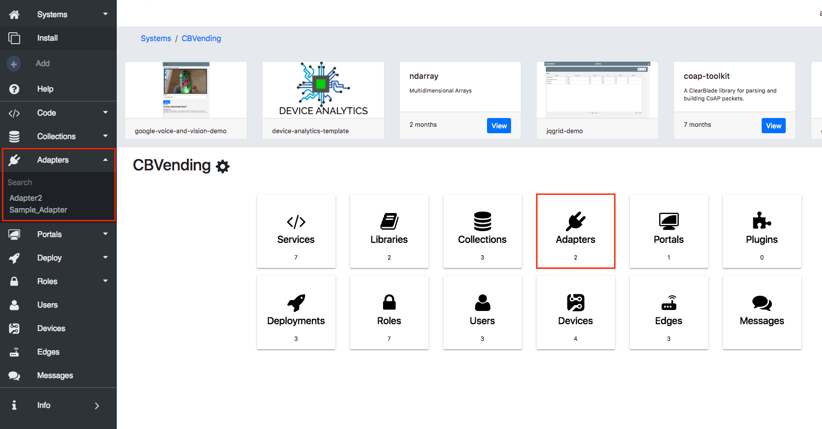 1. Navigate to the Adapters tab on the Developers console’s sidebar or menu.