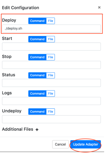 When the file is deleted, the switch will automatically set to Command. Any text in Command will remain. Click Update Adapter to save changes.