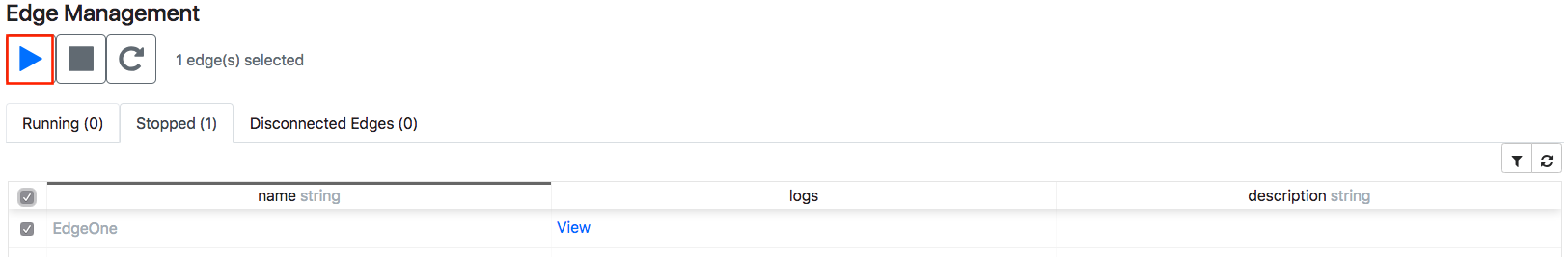 A command or shell script will be executed to start a ClearBlade Edge adapter. If a start command is not specified, the adapter must be manually started by connecting to the gateway device (via SSH) and issuing an appropriate start. An adapter can be started on one or multiple edges from the Edge Management table’s Stopped tab.