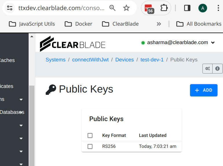 To authenticate, the device will construct a JSON Web Token (JWT) based on the private key and present that on the MQTT authentication or REST endpoint’s connect packet. The JWT is used in place of the standard ClearBlade auth token.