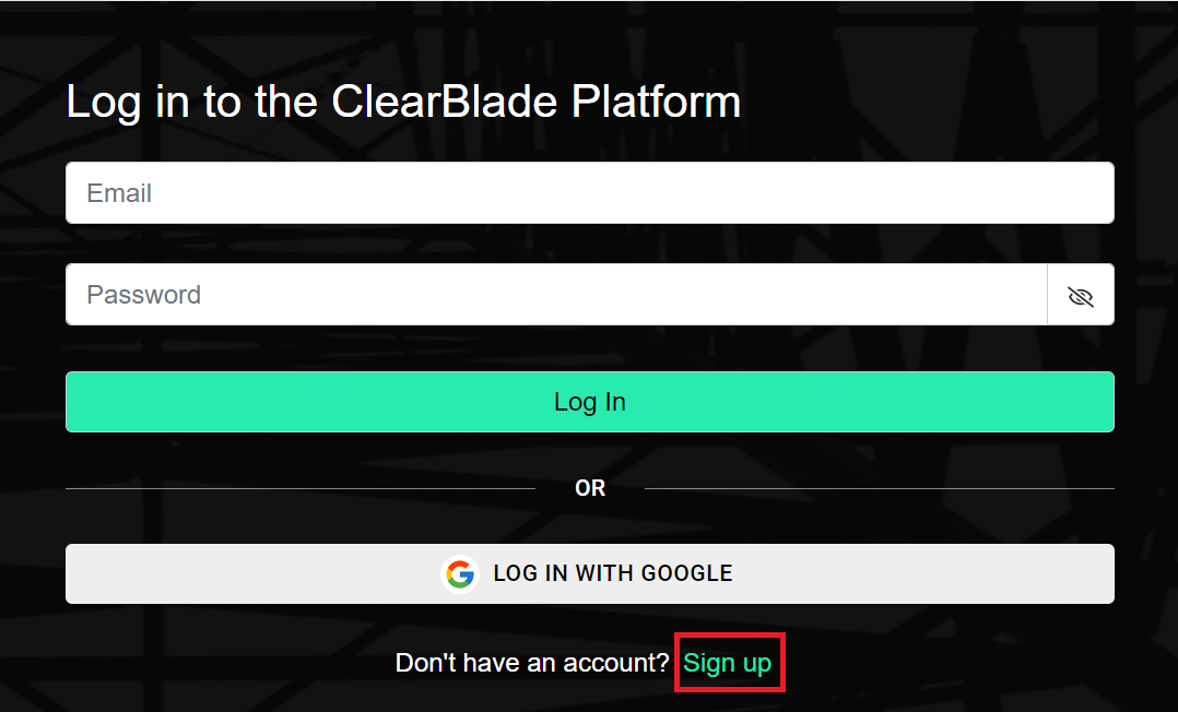 Log into the Platform using your email and password or click log in with Google (2FA support is enabled).