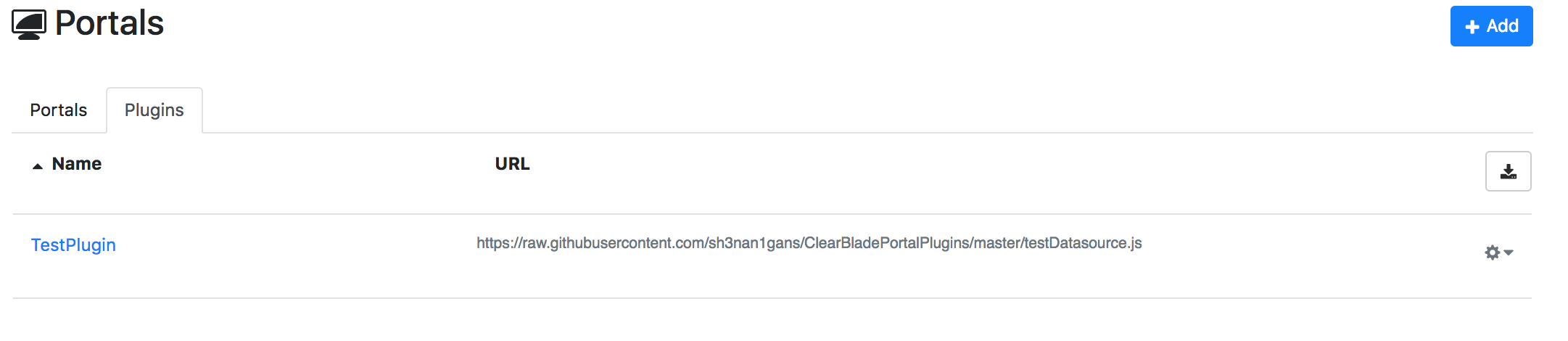 Plugins can be created on the portals page. Click + Add.