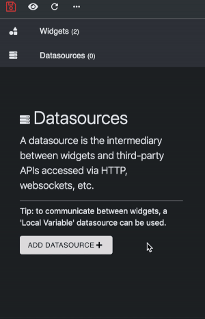 Click Apply, and the datasource and its last update appear in the side editor. It can also be used in a widget under Dynamic.