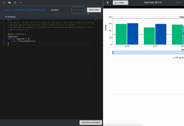 An error message should appear at the bottom of the page after clicking the debug button.