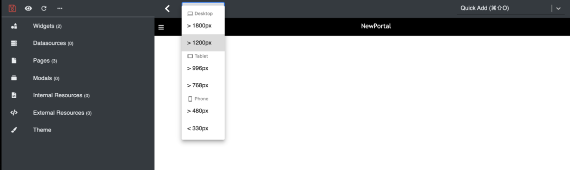 1. Select the screen size you’d like to change the layout by choosing from the dropdown.