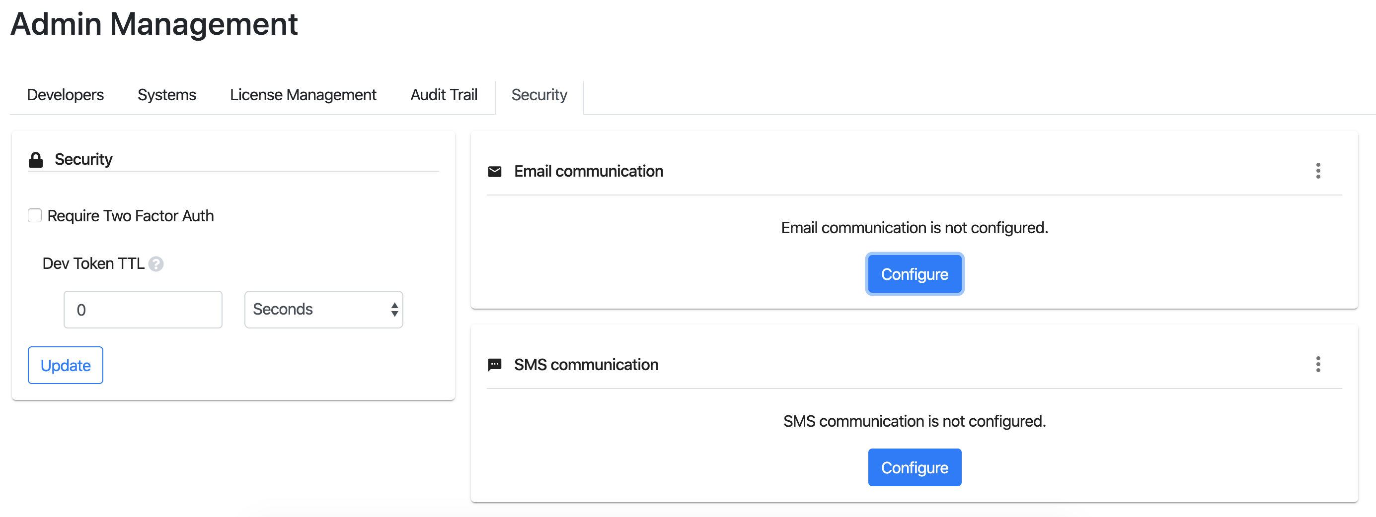 Enable Two Factor Auth | When the checkbox is checked, 2FA is required for logins and sign-ups on a developer’s system |