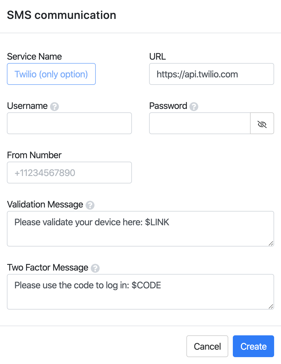 Two Factor Message | The message in the text body when sending login codes to developers. $CODE will be replaced with the generated login code. There will be a default message if this field is left blank |