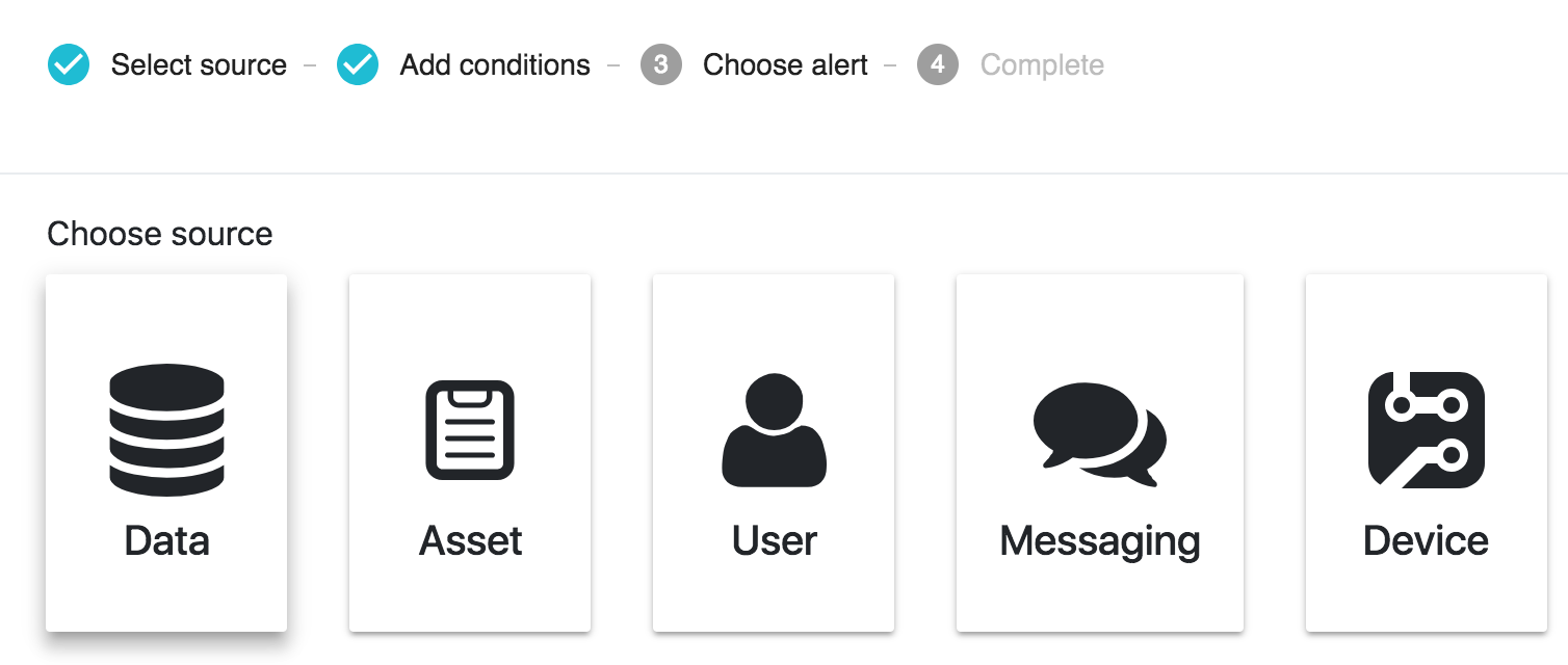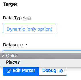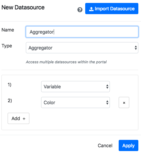 2. Choose your data type and datasource. The datasources in the example below were created previously and not by default.