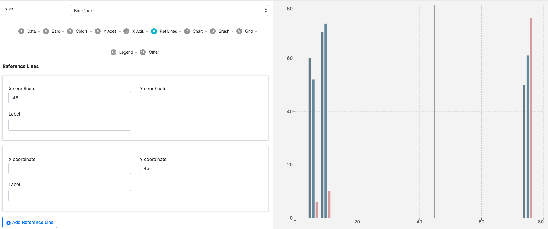 Click Add Reference Line to add more reference lines. Hover over the reference lines data entry window to reveal the trash can for deletion.