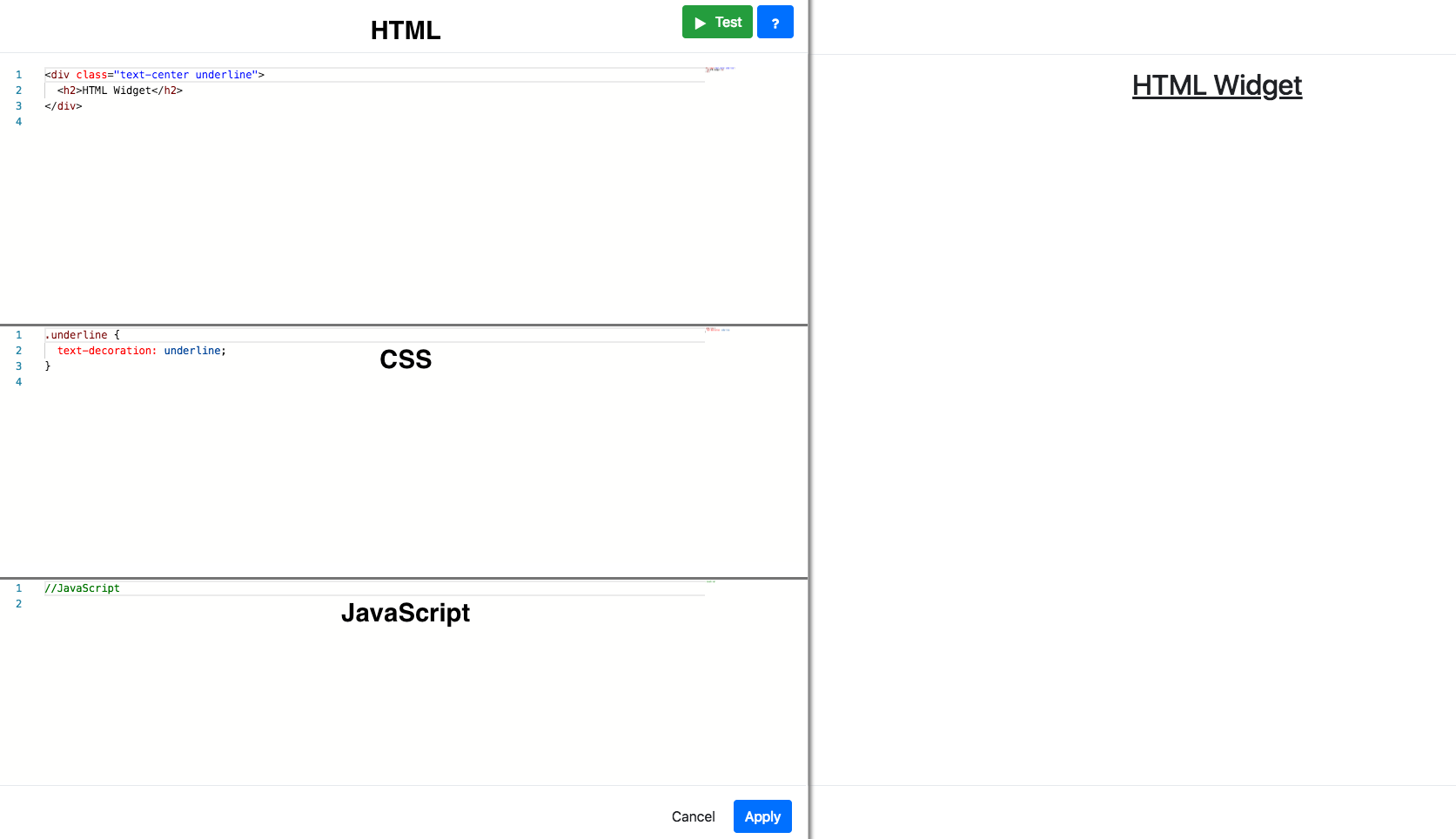 HTML ID | Used to target the DOM’s widget elements | Add an ID to the page like this: |