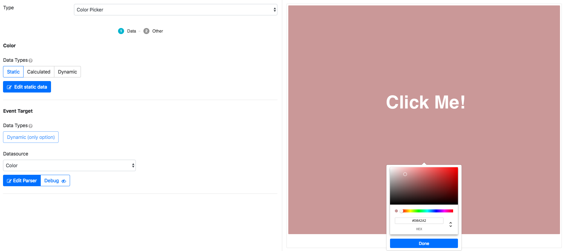 Dynamic | A JavaScript function that will be updated as the corresponding datasource gets updated |