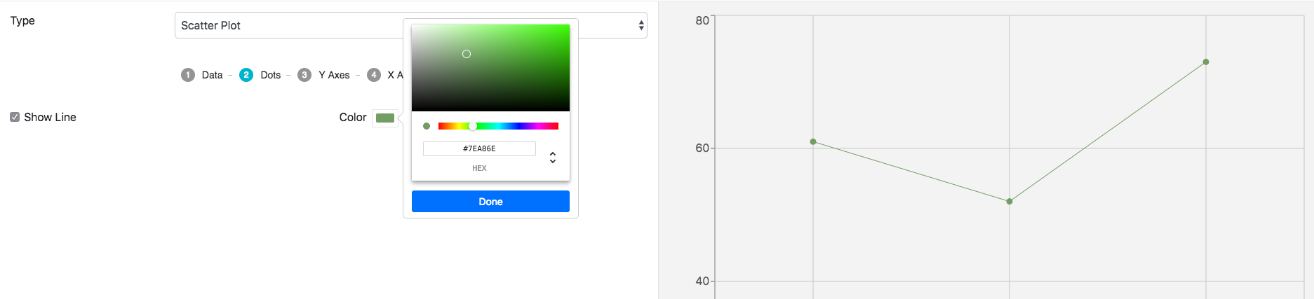 Check the Show Dots box to add points to the graph. Click Add Line to add more lines. Hover over the line data entry window to reveal the trash can for deletion.