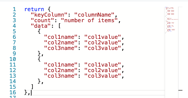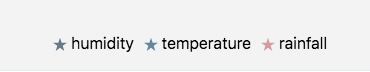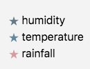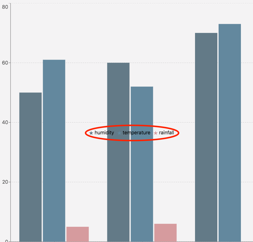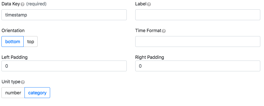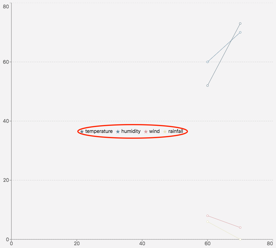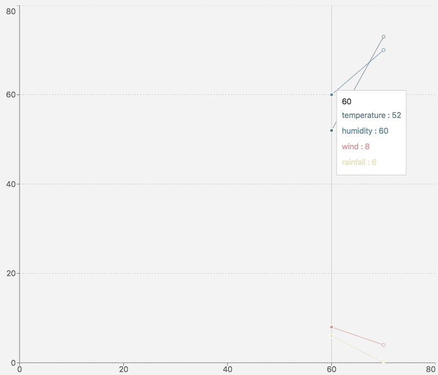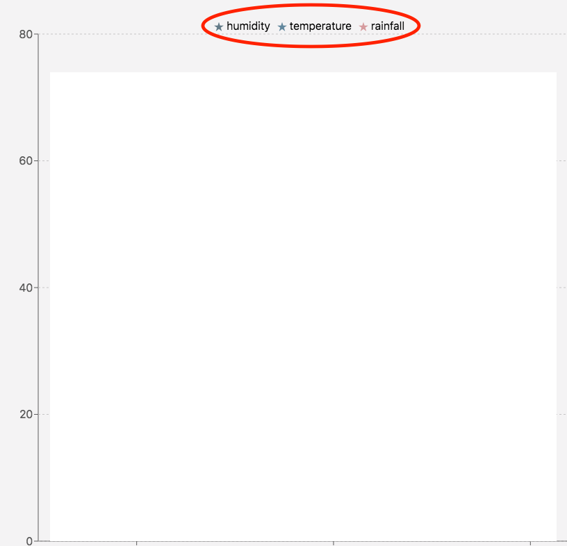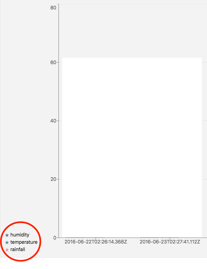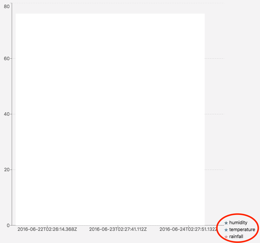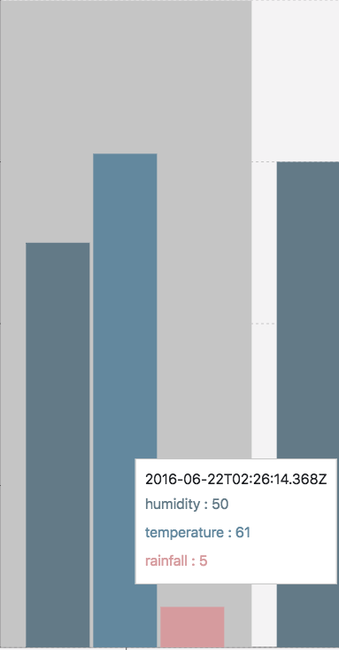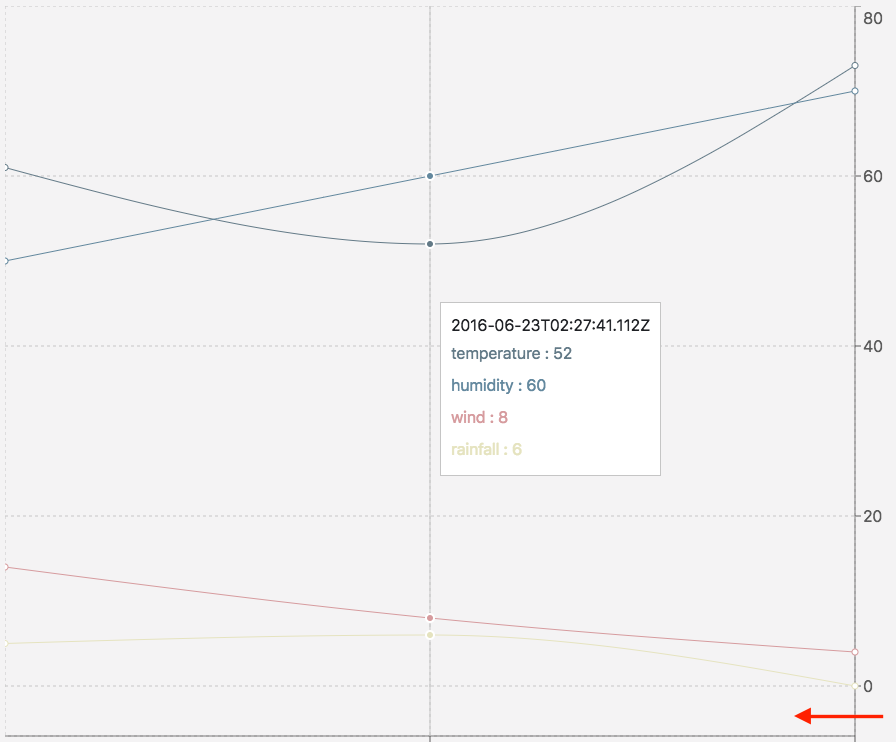 Data Key | Data object property whose values correspond to the y-axis ranges | return [{“temperature”:61,“humidity”:50,“wind”:14,“rainfall”:5,“timestamp”:“2016-06-22T02:26:14.368Z”}]; |