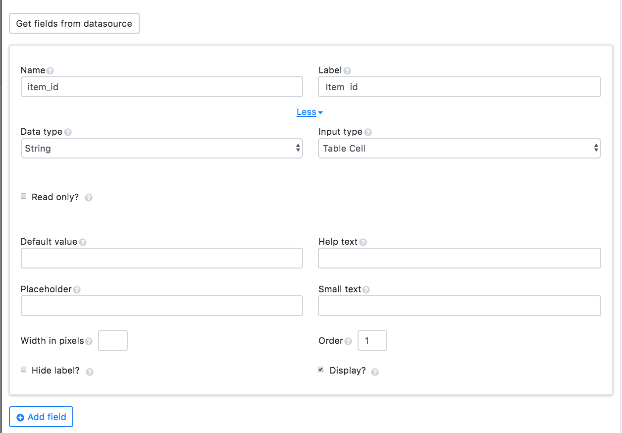 Get fields from datasource | Retrieves datasource column information | ![]() |