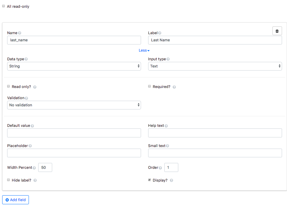Help Text | Adds a help text icon next to the field label | ![]() |