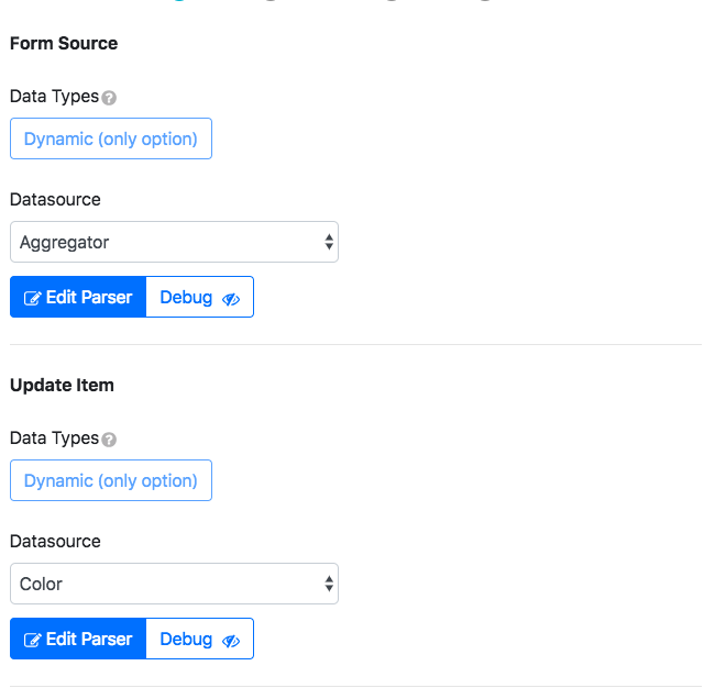 4. Create a new form widget whose incoming datasource is the aggregator. A parser error will display.
