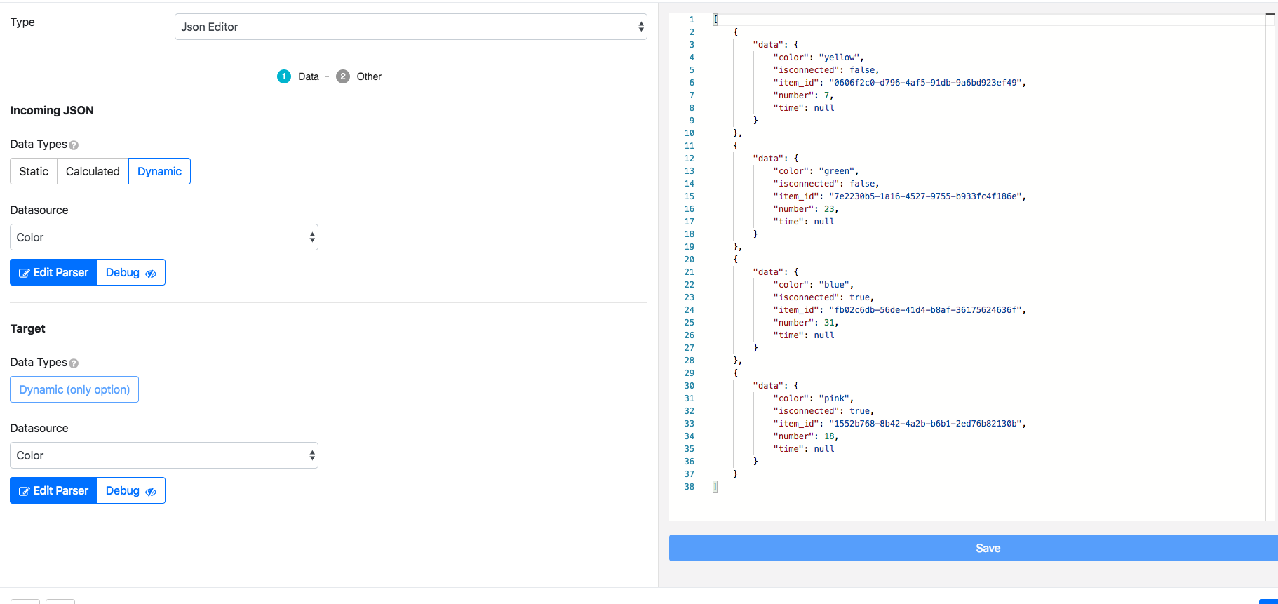 ![]() | Choose the incoming data type to render. Expected format: ![]() |