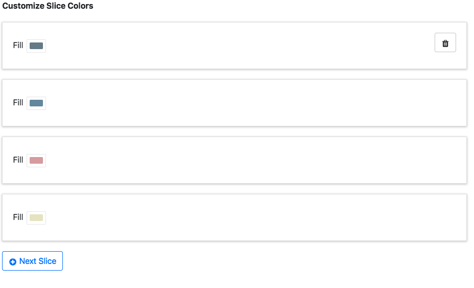 This is used to give each section a fill color. Click Next Slice to add more colors. Hover over colors to reveal the trash can for deletion.