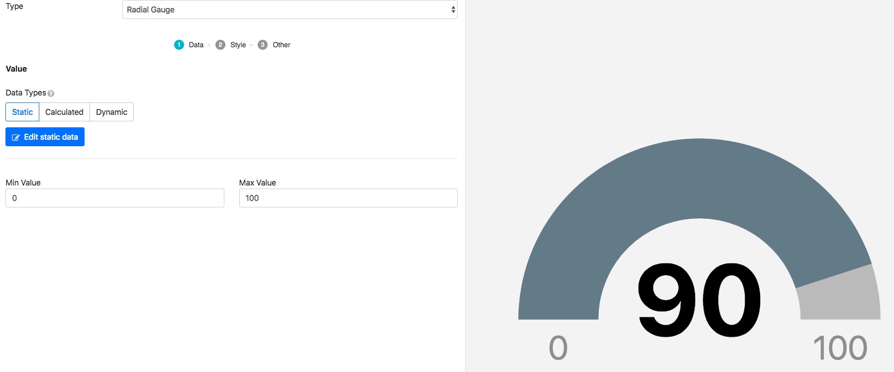 Input Type | Choose how the data should be displayed | Radial gauge: ![]() |