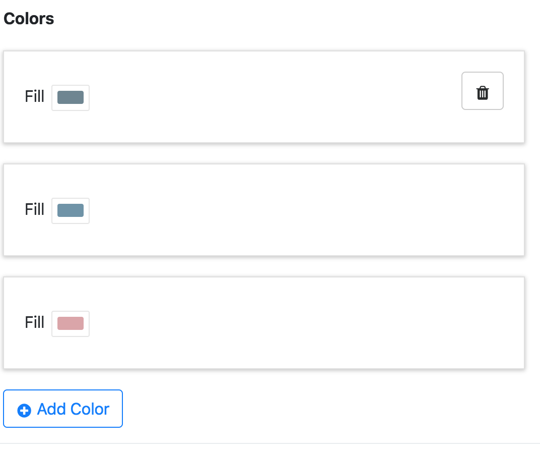 This is used to give each section a fill color. Click Add Color to add more colors. Hover over colors to reveal the trash can for deletion.