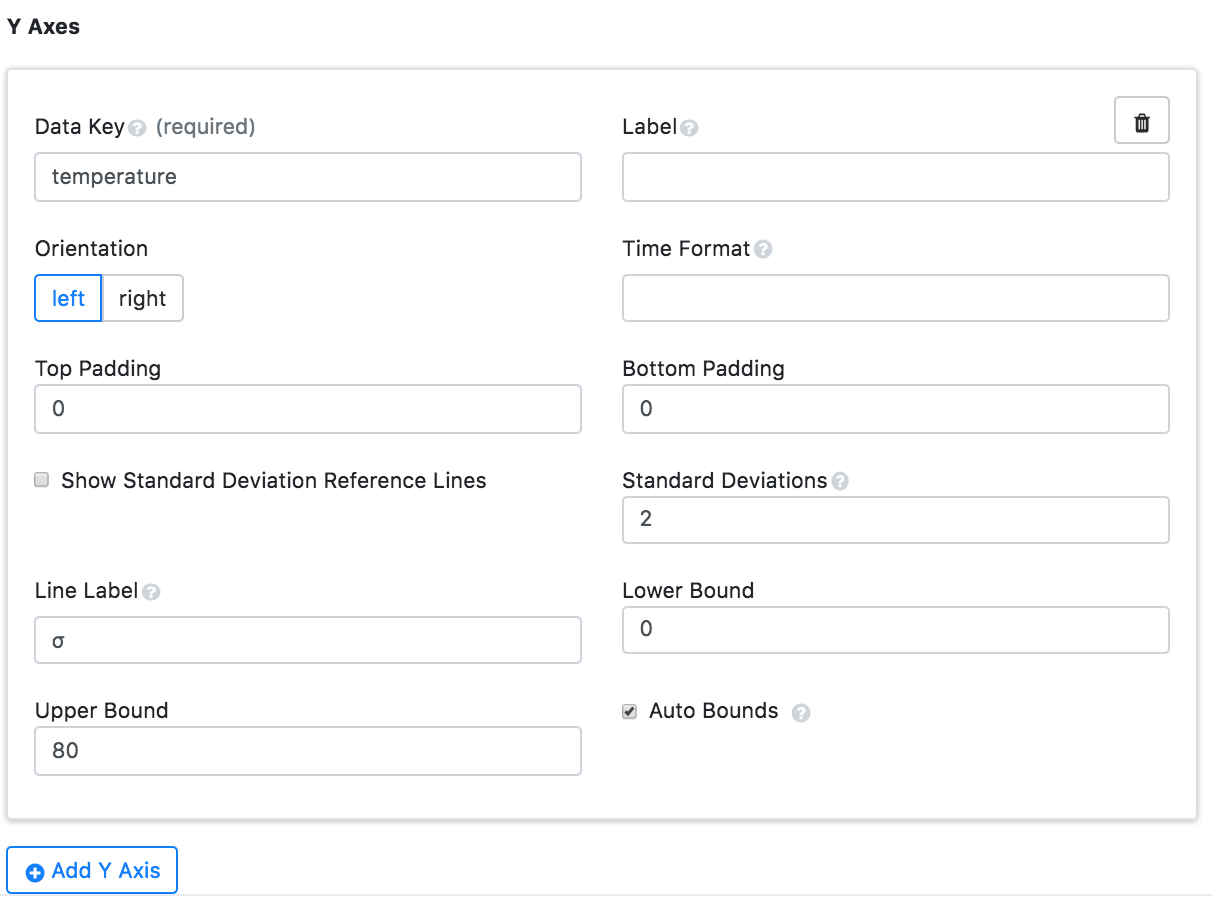 Click Add Y-Axis to add more axes. Hover over the Y-axis data entry window to reveal the trash can for deletion.